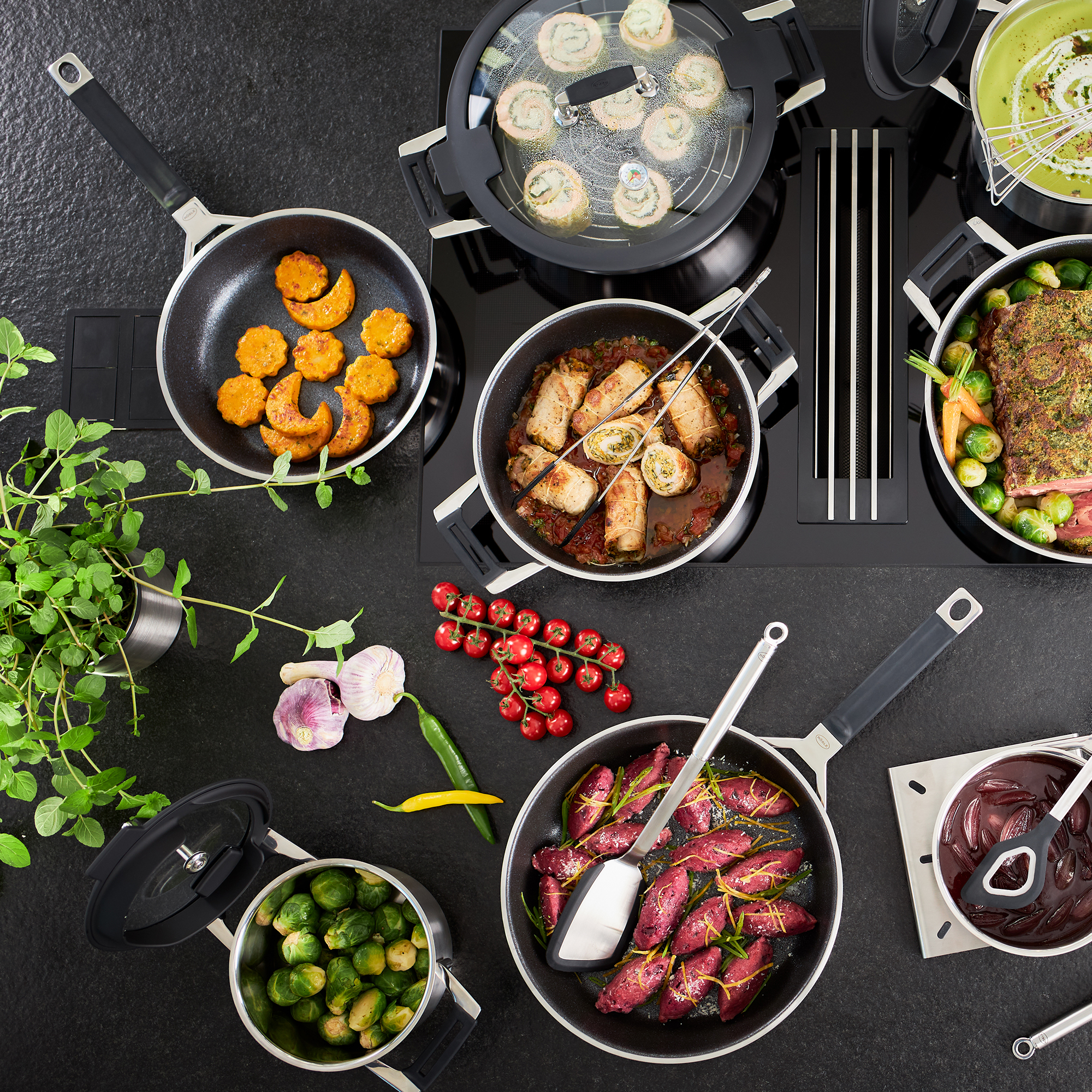 - Silikonummantelung an Griffen und Deckel schützen vor Hitze (temperaturbeständig bis 200 °C)