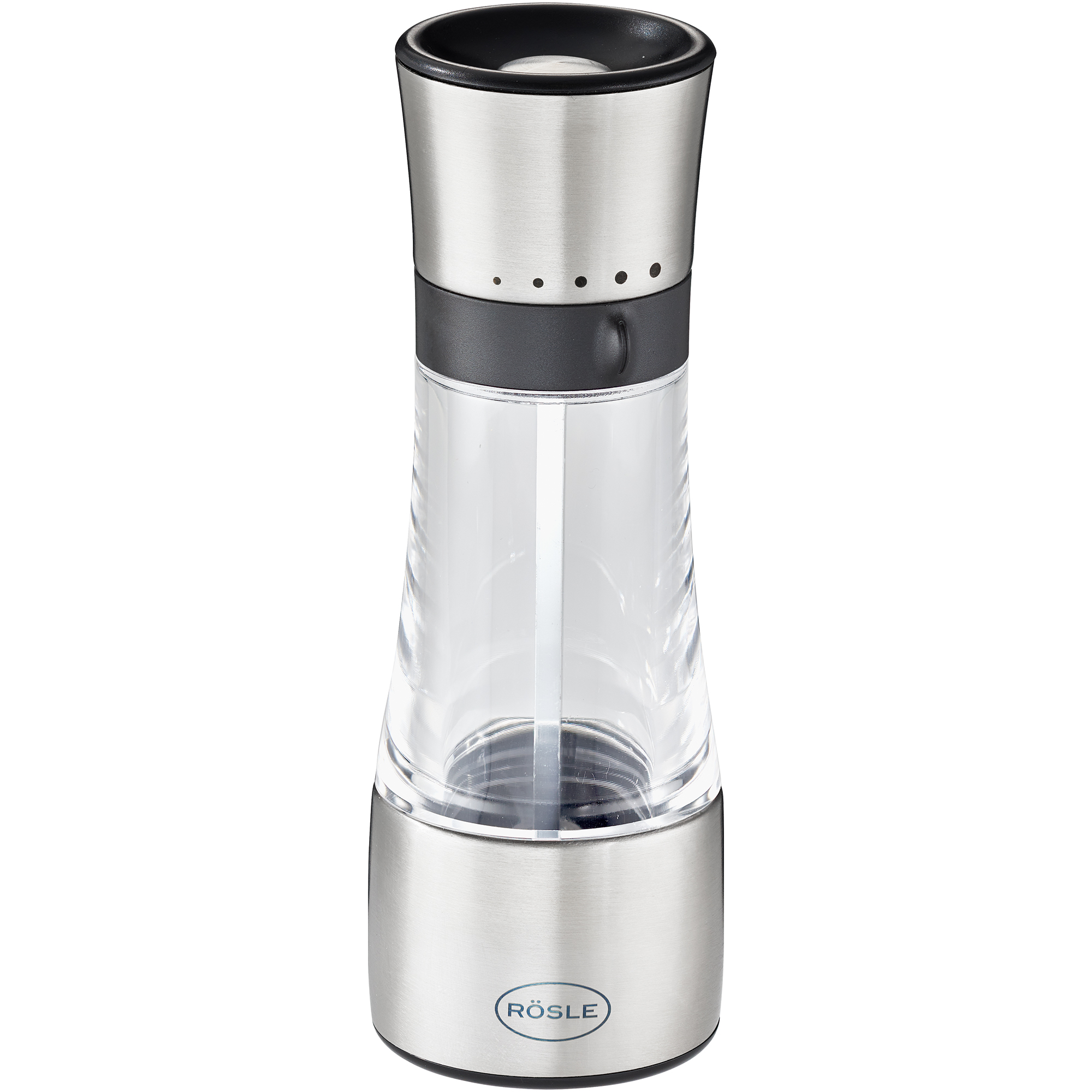 A spice mill with a crank has a certain nostalgic charm, but requires more space and is more difficult to handle and clean than a mill without a crank. A disposable spice mill, on the other hand, increases the consumption of raw materials, but not necessarily the flavor of your food, which is why we at RÖSLE only carry durable and manually operated spice mills in our range, which are easy to handle when turning and seasoning.