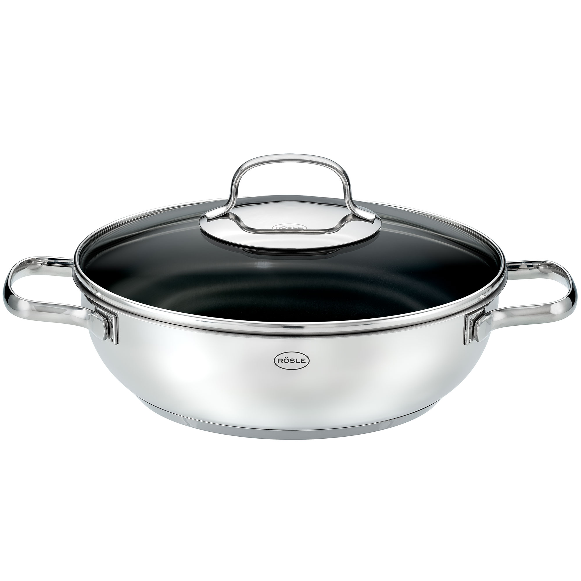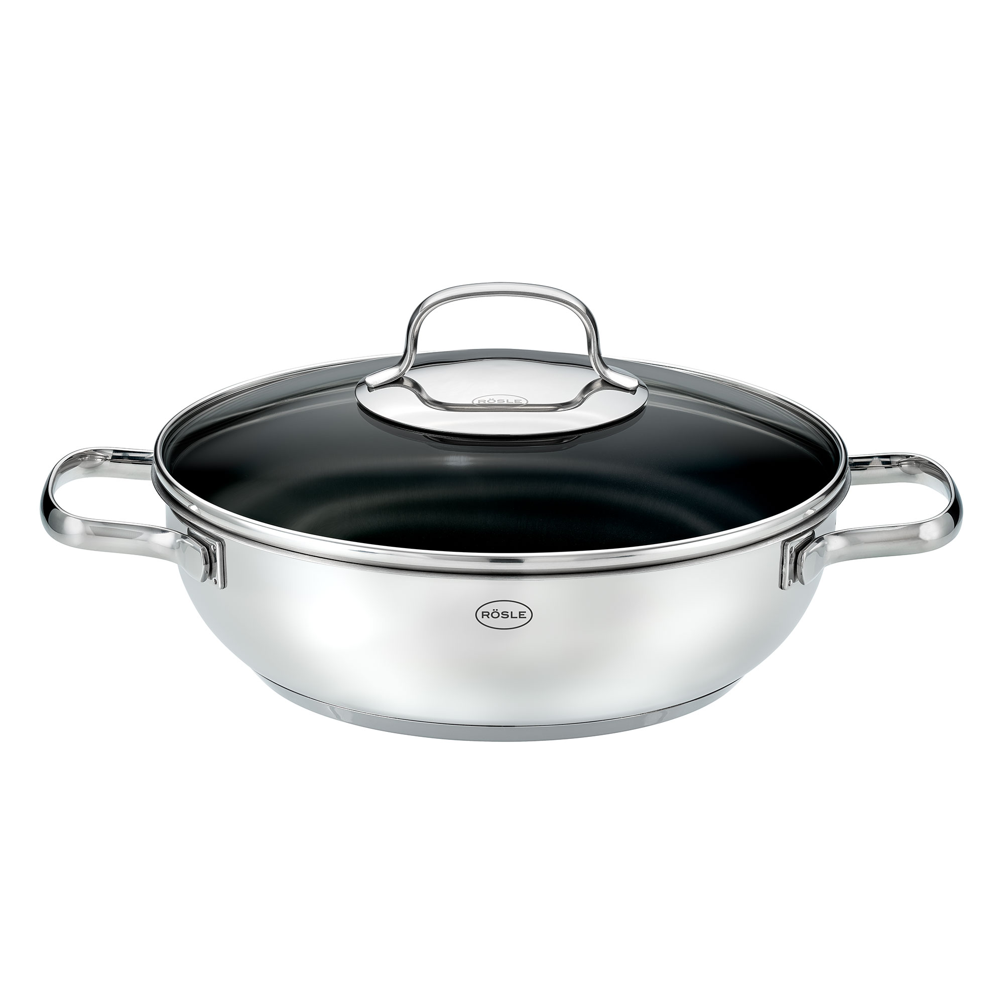 With serving pans from our SILENCE PRO range, it's the little details that make all the difference. These include a continuous pouring rim and a silicone coating on the pan handle. Serving pans from the SILENCE PRO range are available in four different sizes and, like the entire RÖSLE pan range, are suitable for use on all types of stove. The matching pan lids are of course also available from RÖSLE